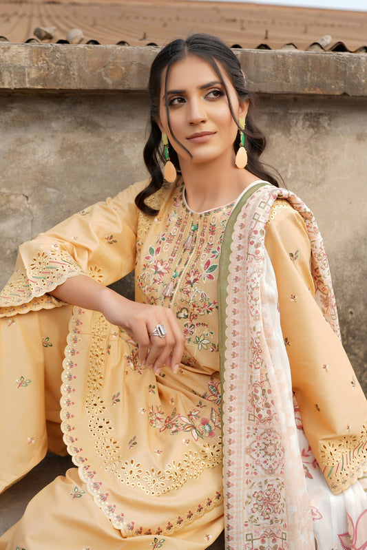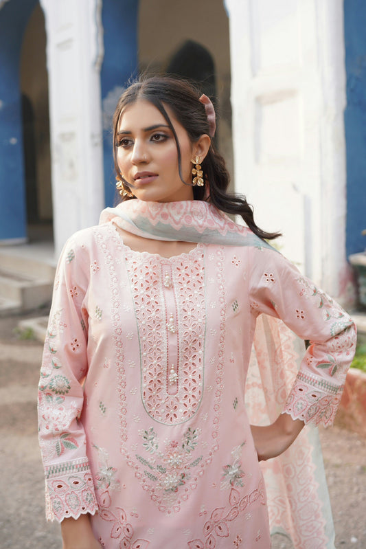 Stitched 3 Piece Summer Cotton Suit-Embroidered