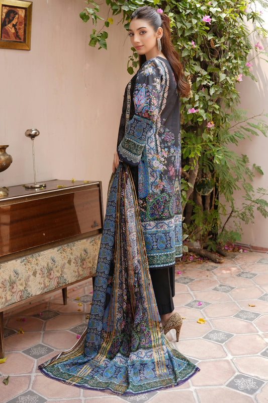 Stitched Embroidered Lawn Suit-3 Piece