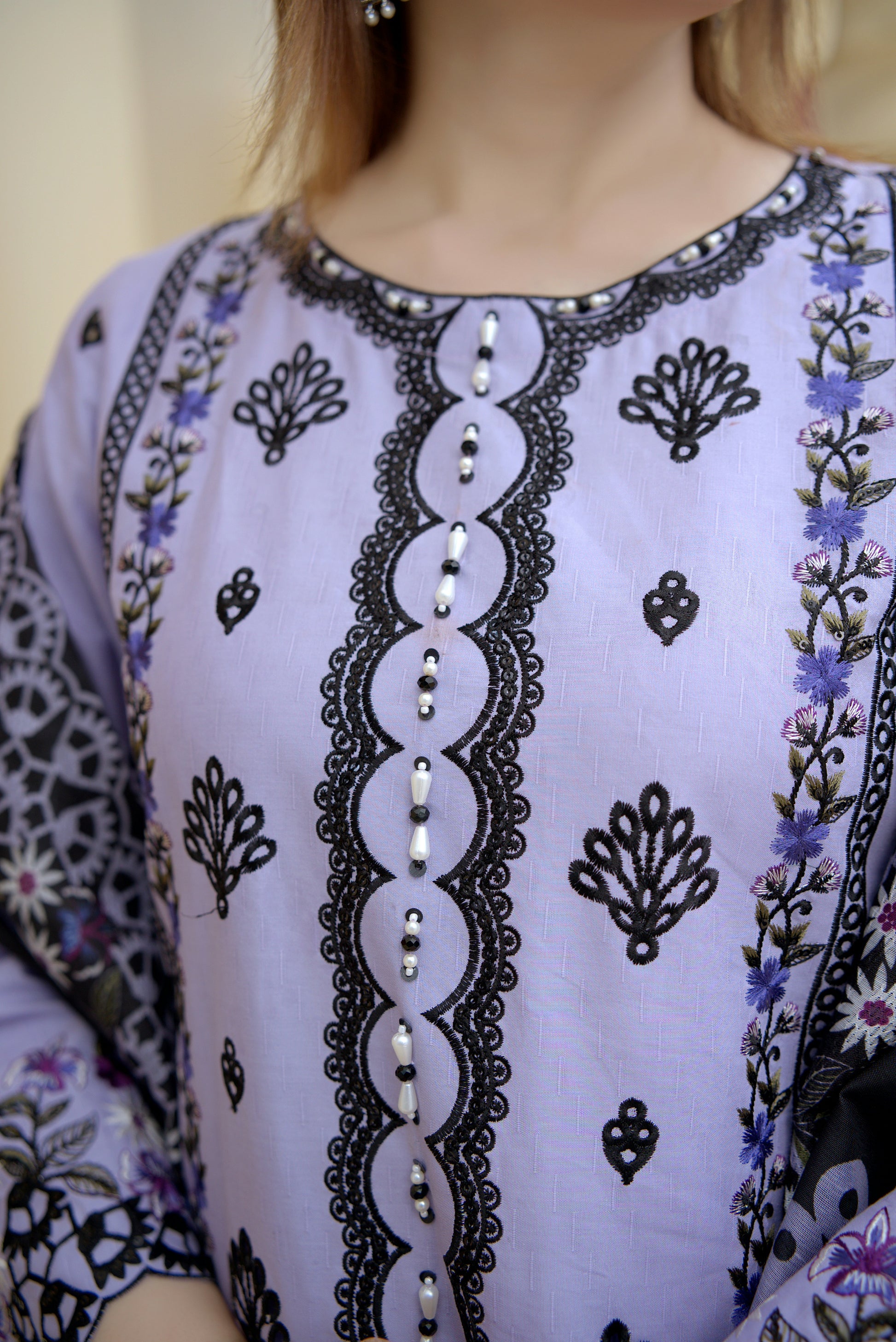 3 Piece Cambric Suit-Embroidered