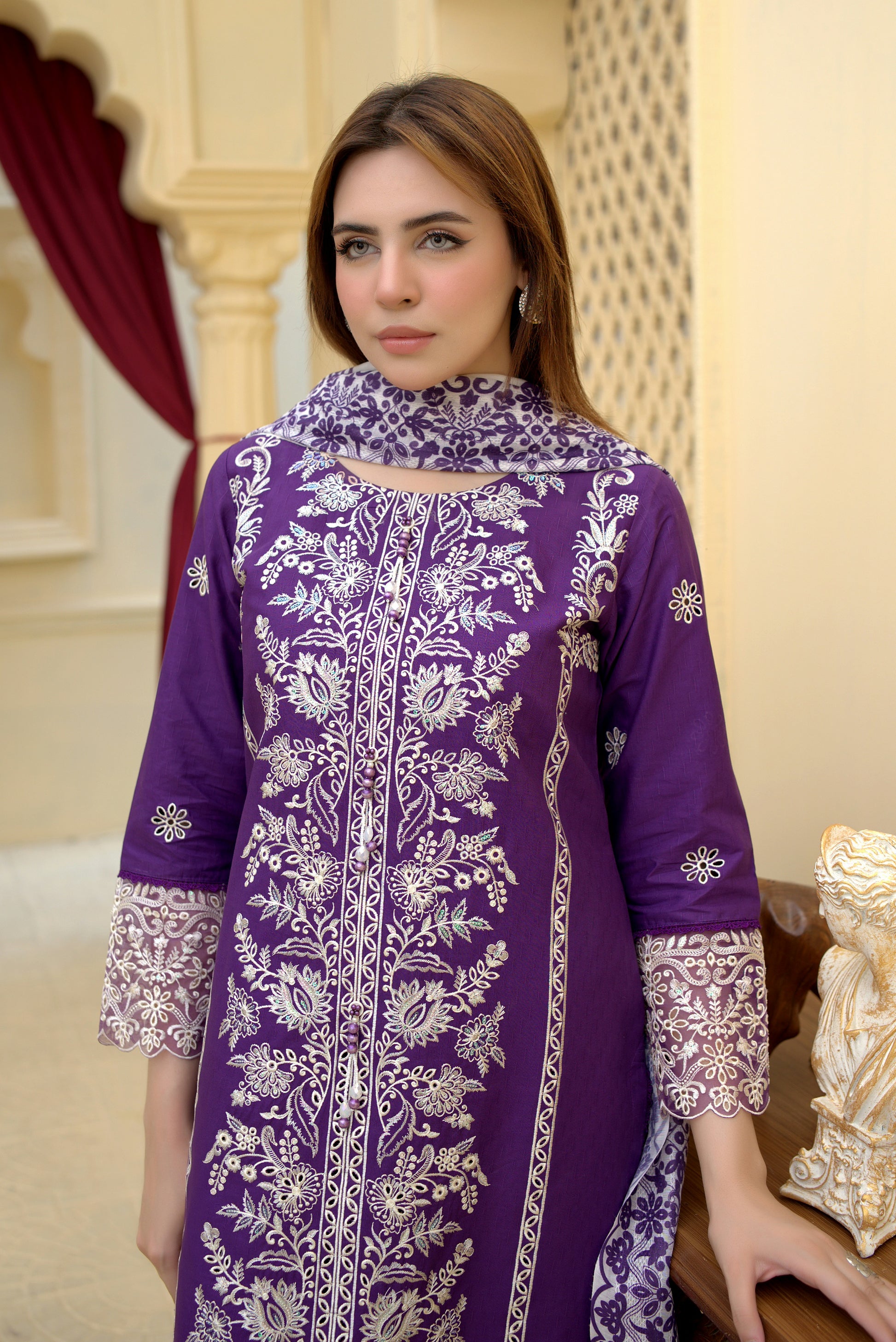 3 Piece Cambric Suit-Embroidered