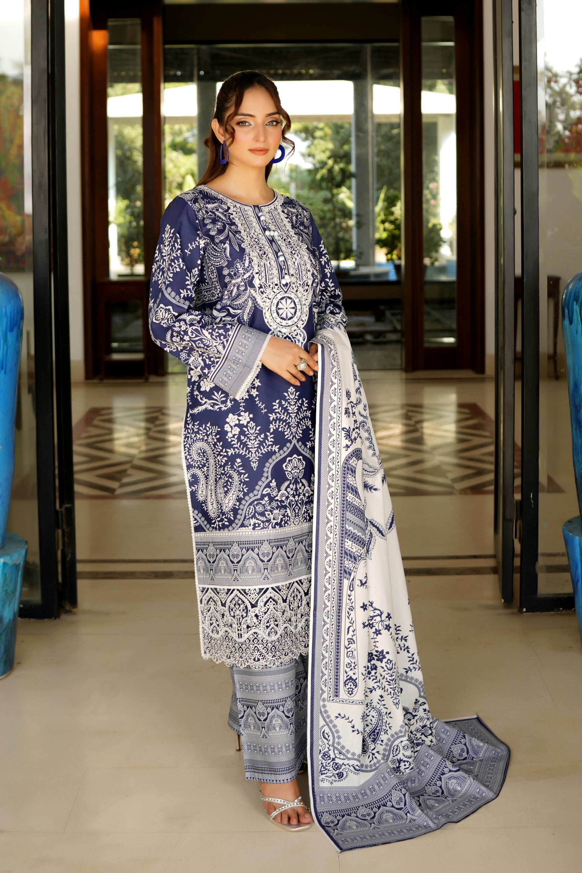 3 Piece Stitched Winter Cotton Suit-Embroidered
