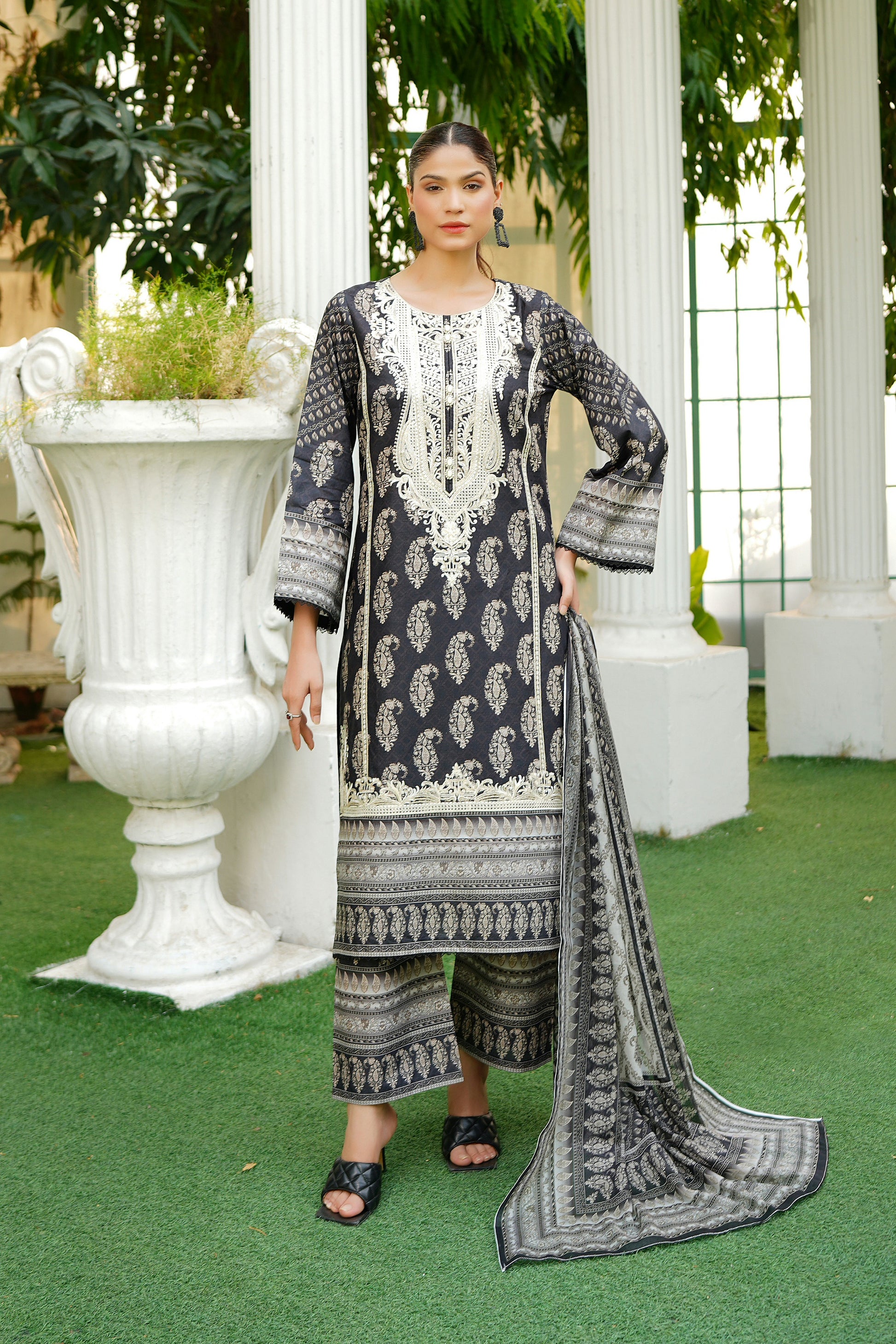 3 Piece Summer Cotton Suit-Embroidered