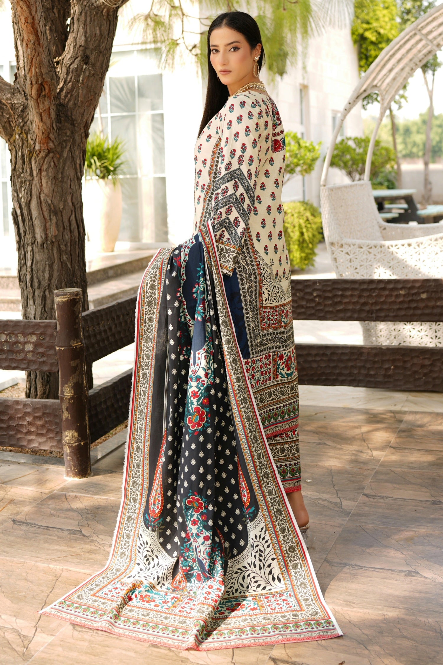 Printed Shawl With Same Fabric Cambric Cotton
