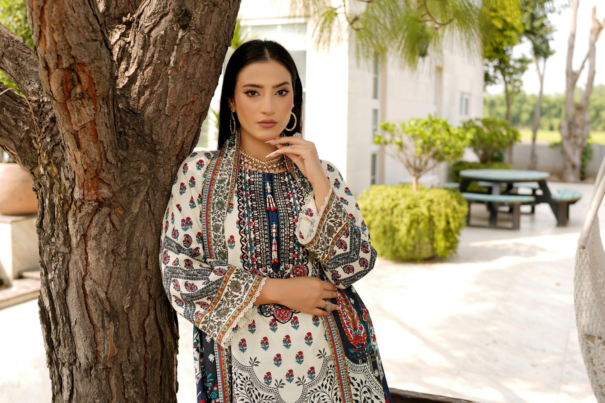 2) SOME ACCESSORIES EMBELLISHMENTS USED ARE ONLY FOR. SHOOT PURPOSES AND NOT PART OF THE ACTUAL SUIT.